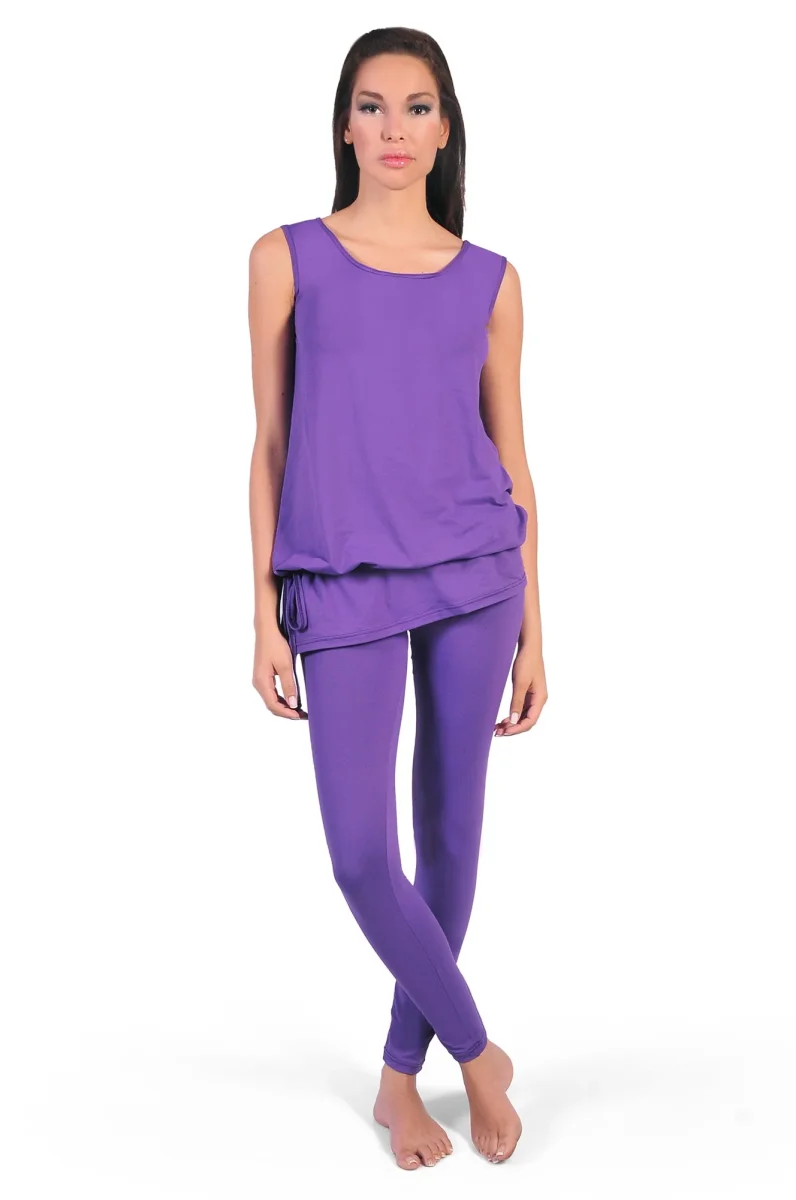 Une ligne simple mais polyvalente et attrayante pour ce chemisier : sans manches et avec des encolures rondes pas trop larges, il est assez long mais peut être resserré à la taille ou autour des hanches avec un cordon, créant un drapé agréable. À porter avec des leggings longs ou courts, tant qu’ils sont ajustés.